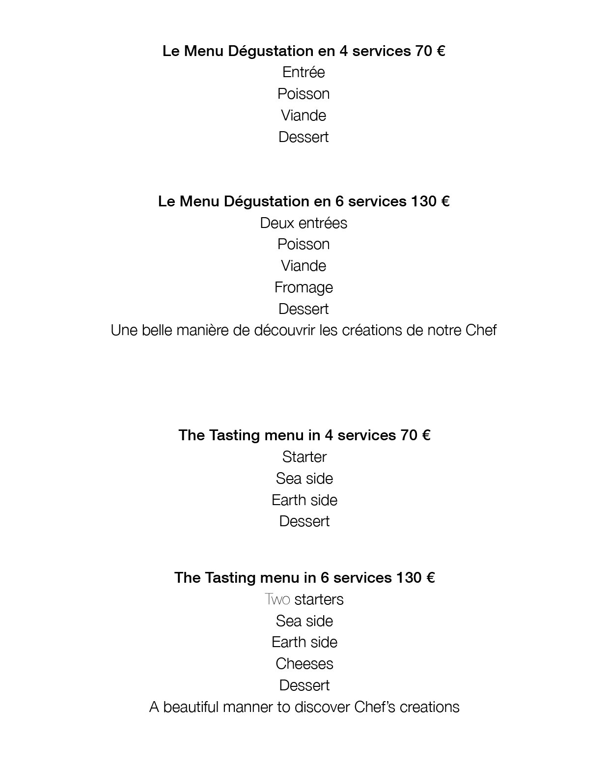 Menu Dégustation